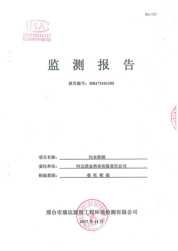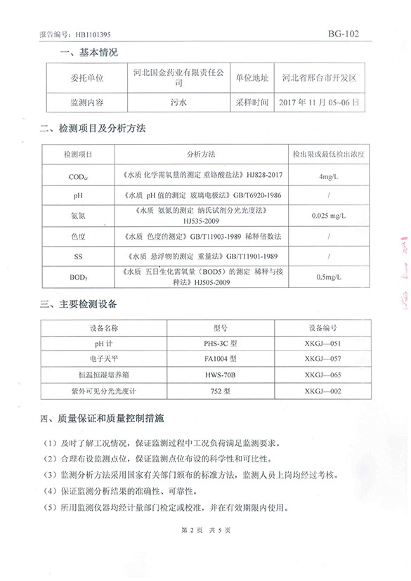 河北國金藥業(yè)有限責(zé)任公司污水監(jiān)測(cè)報(bào)告